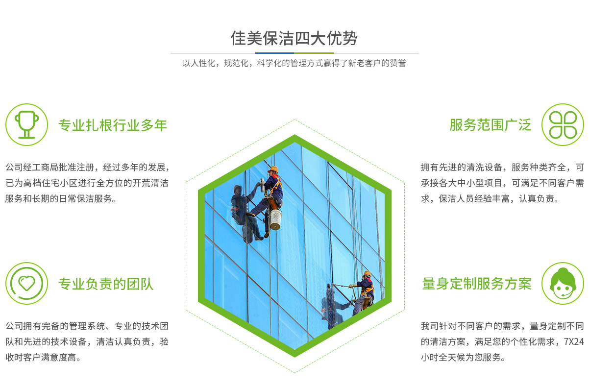 - 馬鞍山市佳美保潔服務(wù)有限公司是一家經(jīng)工商部門批準(zhǔn),具有法人資格專業(yè)清洗,馬鞍山保潔服務(wù)的公司,自創(chuàng)辦以來,一直致力于企業(yè),家庭,賓館,學(xué)校,別墅,酒店,商廈,公共設(shè)施等場(chǎng)所提供科學(xué)的日常保潔和清潔保護(hù)的服務(wù)公司,有著豐富的管理服務(wù)和保潔經(jīng)驗(yàn)...